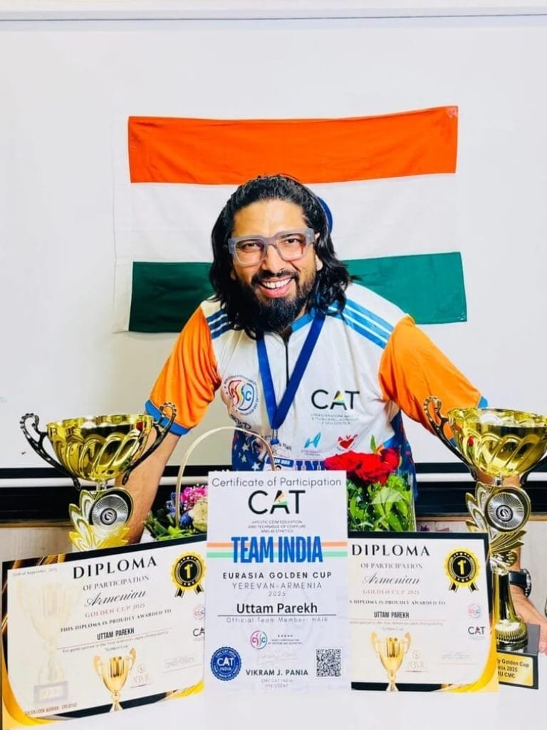 India marks a proud moment on the global stage of professional hair artistry as Mr. Uttam Parekh, representing Team India, brings glory to the nation by winning 1st Place in Creative Salon Look and 1st Place in Avant Garde Look at the prestigious Eurasia Golden Cup 2025 held in Armenia. His remarkable achievement stands as a true inspiration for every aspiring stylist to dream bigger, create fearlessly, and showcase India’s creative excellence to the world.