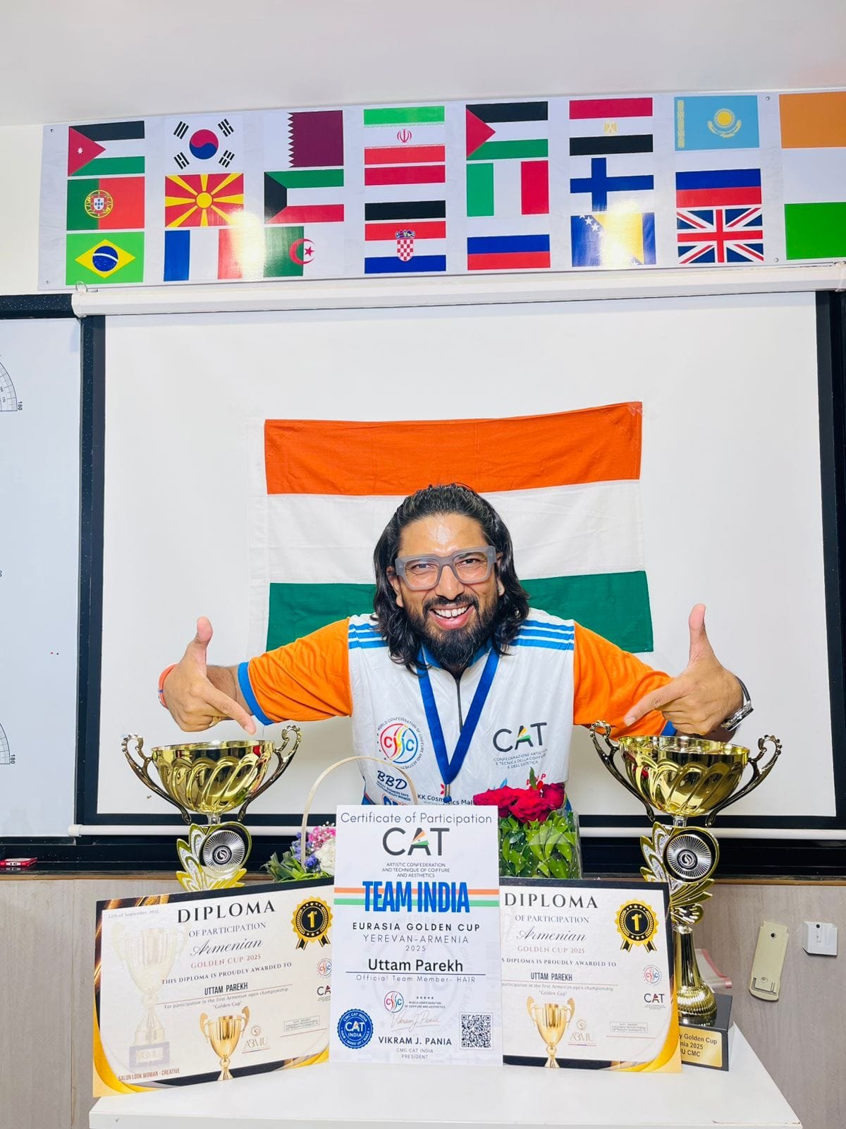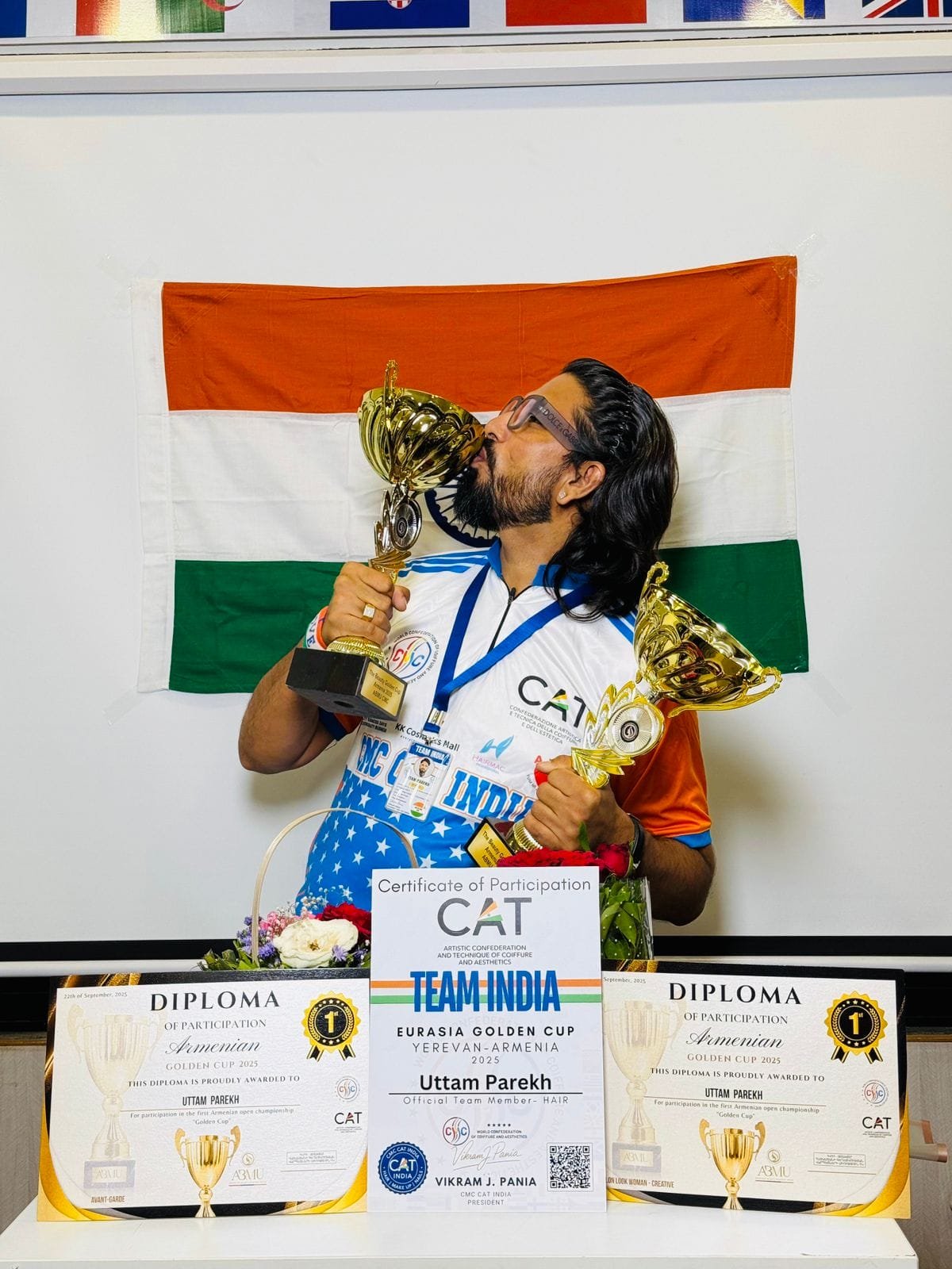 India marks a proud moment on the global stage of professional hair artistry as Mr. Uttam Parekh, representing Team India, brings glory to the nation by winning 1st Place in Creative Salon Look and 1st Place in Avant Garde Look at the prestigious Eurasia Golden Cup 2025 held in Armenia. His remarkable achievement stands as a true inspiration for every aspiring stylist to dream bigger, create fearlessly, and showcase India’s creative excellence to the world.